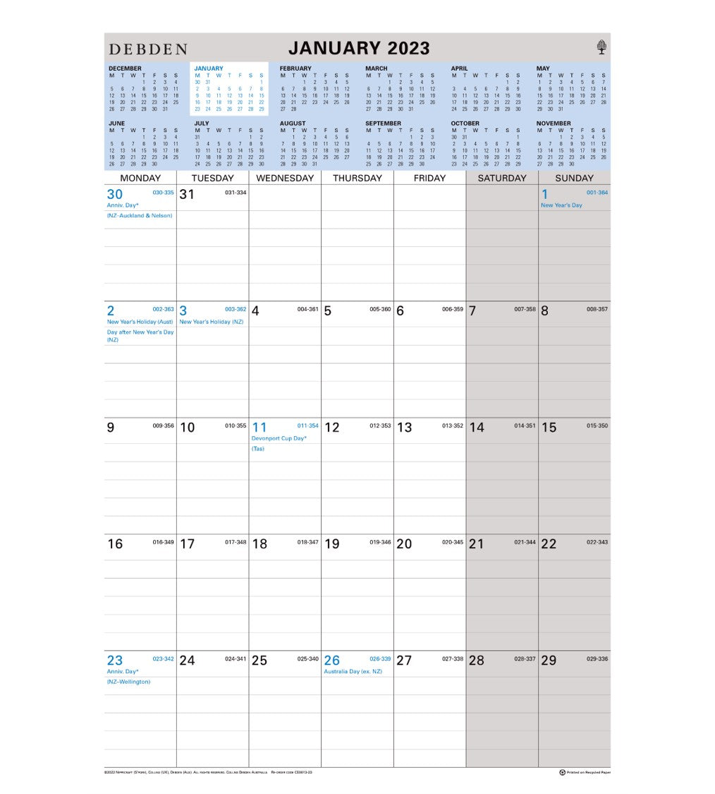 CALENDAR 2023 COLLINS CE0013 432X305MM WIRO MTV